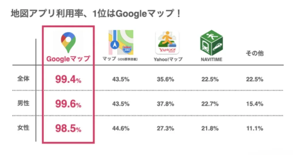 また、Googleは世界共通検索ツールなので日本に来た訪日外国人もGoogleマップを使ってお店を検索しているので幅広い客層を獲得できます。