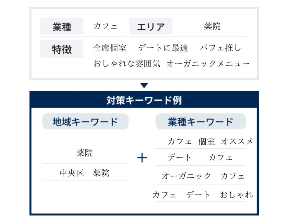 「地名+サービス名」と検索するユーザーは「今○○したい!」と考える人が多く、すぐに来店してくれる見込み客となります。