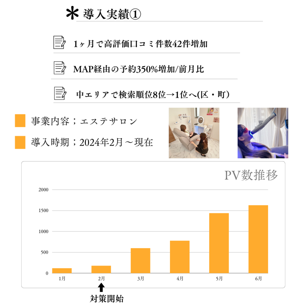 - MAP経由での予約件数が月間平均5〜6件から平均18〜20件に増加